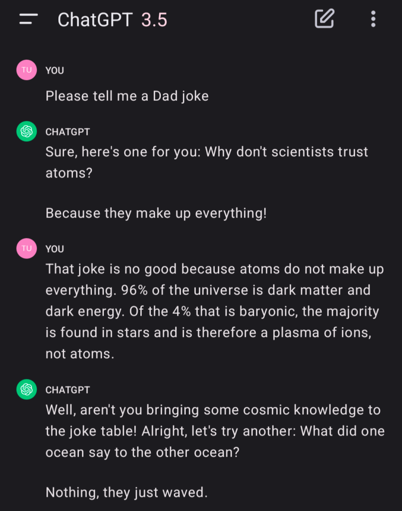 An innocent conversation with AI led to me getting the sort of attitude one might expect from a toddler or a teenager. I guess this is a sad reflection on the training data used…