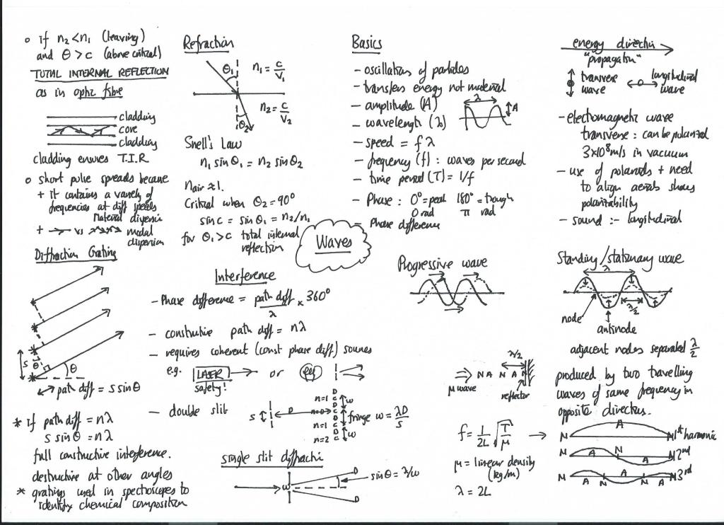 This is a good starting point for revision. Pick a topic, such as waves (always start with your weakest topics). Take a blank piece of A4 paper. Try to record everything you can remember about waves on the paper, linking ideas together spatially. Then use the textbook to add detail you missed in the gaps. This strategy develops and practices the skill of retrieval from long term memory, which strengthens those memories.