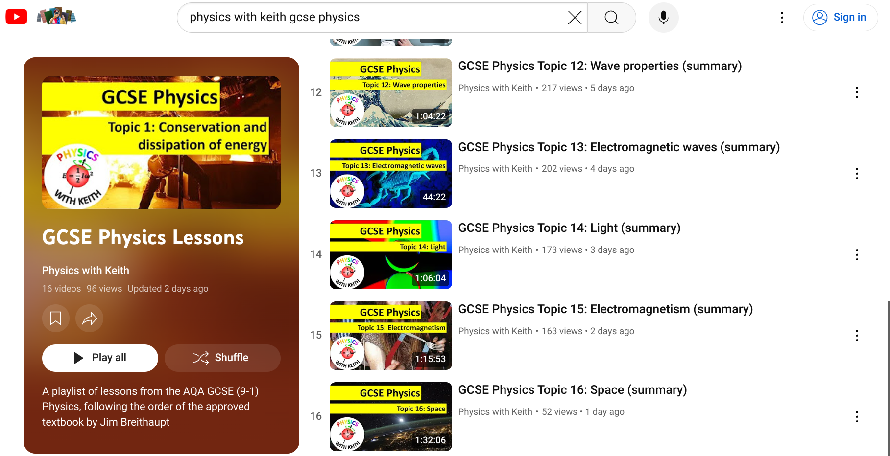 If you are studying GCSE Physics, you may find this playlist useful. It is just under 17 hours and 20 minutes long. The playlist is below.