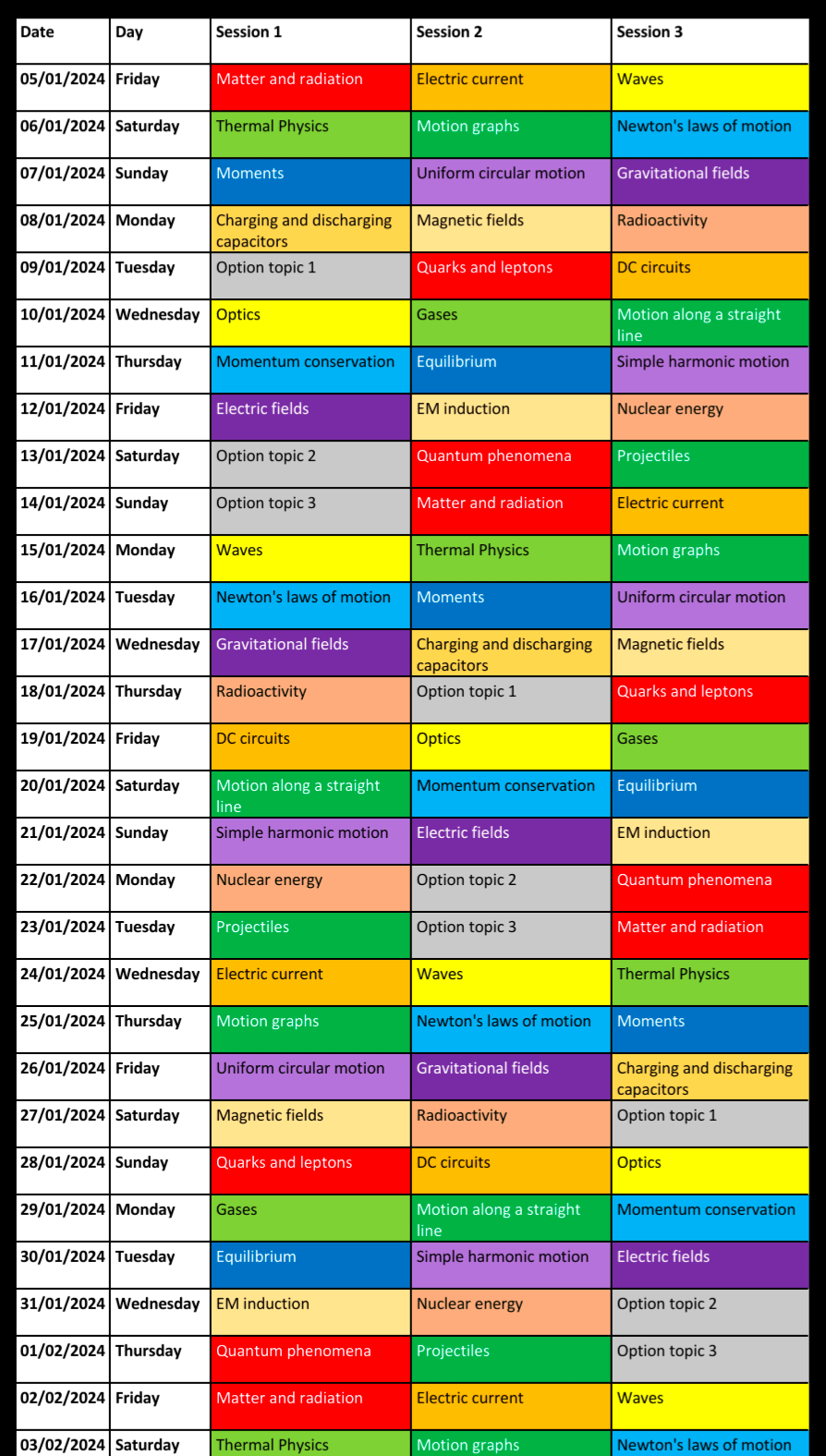 A Level revision timetable!