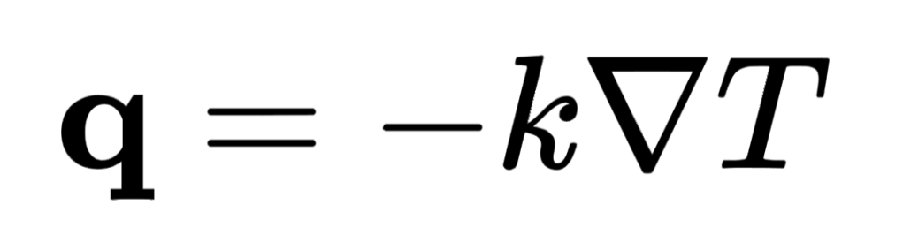 where k is the thermal conductivity and ∇T is the vector gradient of the temperature.