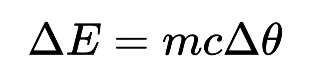The net change in the thermal energy store of a body can be calculated based on the temperature change of the body using this equation:
