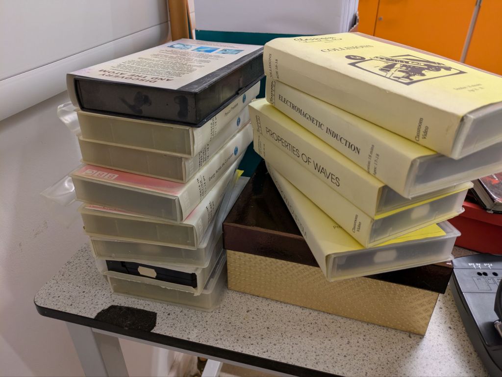My Physics department at school has a collection of old VHS cassettes, some dating back to the 1980s. I don’t want them to be lost forever, so I’ve started the process of digitising them.